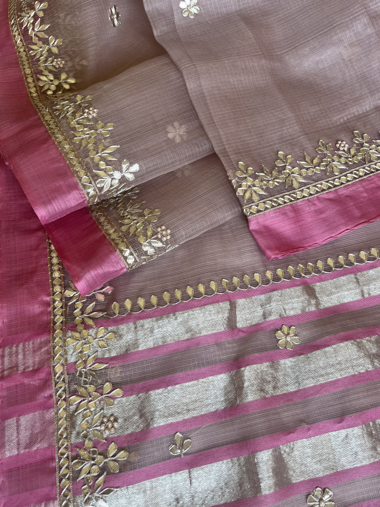 Known for its signature square-like patterns called “khat,” Kota Doria (Kota Doriya) is still hand woven on traditional pit looms in Kaithoon (Kethun), near Kota, Rajasthan. It is believed that, the original Kethun weavers were brought in from Mysore, by the ruler Maharao Kishore Singh, of the erstwhile state of Kotah, in the 17th century. Hence the weave is also called ‘Kota Masuria.’ In the present day, about 90% of the handloom weavers comprise of women, who spend a part of the day weaving from the comforts of their home, in addition to their household chores.